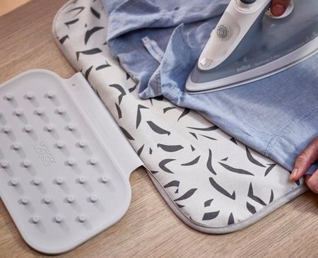 Килимок для прасування Ecru Scatter Swift Joseph Joseph Ironing Mat замінює прасувальну дошку. У вас маленька квартира або ви не любите встановлювати прасувальну дошку? Спробуйте килимок від бренду Joseph Joseph. Ви можете використовувати його двома способами: • прасування на квартирі - наприклад, на дивані, • прасування вертикально за допомогою відпарювача, підвішування килимка, наприклад, на дверцята шафи.