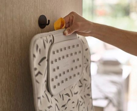 Ви можете легко зберігати килимок для прасування Ecru Scatter Swift Joseph Joseph Його можна згорнути в рулон - ви легко знайдете для нього місце. Килимок також має ручку, яку можна повісити на гачок на дверях або на вішалці в шафі. Перед зберіганням переконайтеся, що продукт висох. Килимок Joseph Joseph слід чистити вручну.