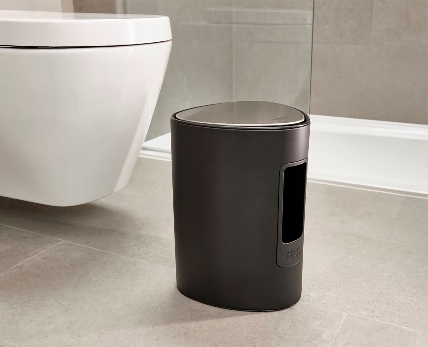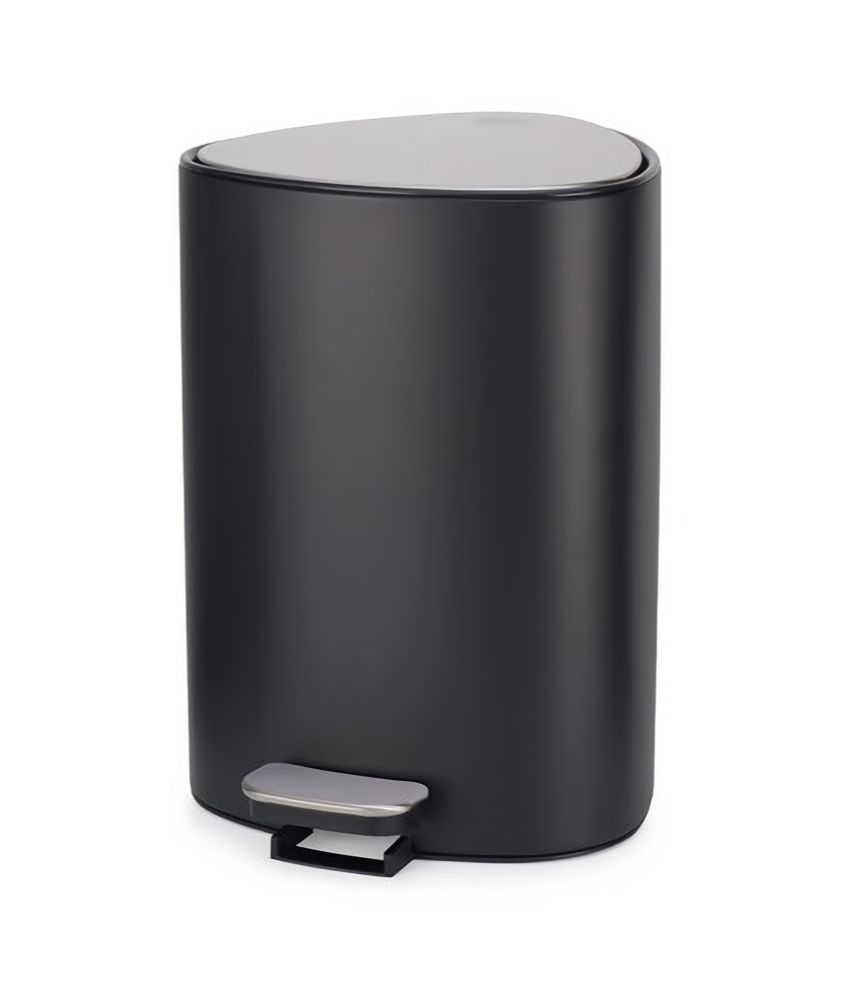 Відро для сміття у ванній кімнаті з місткістю 5 л EasyStore чорного кольору. Виготовлений з нержавіючої сталі та пластику. Система відкривання педалями та кришка, що повільно закривається.