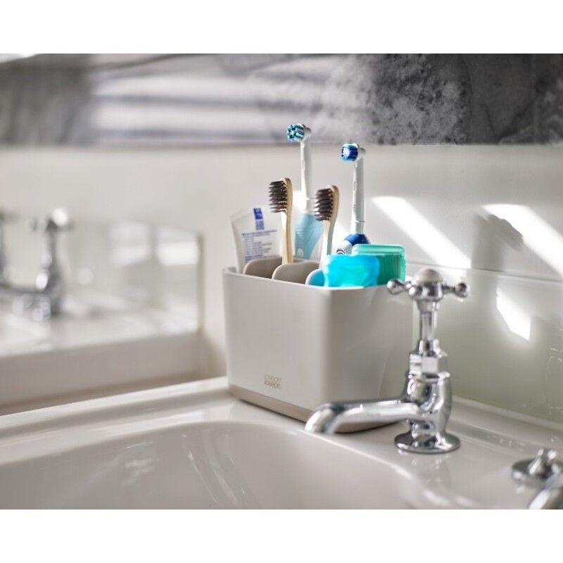 Оточуючи себе красивими та функціональними предметами, у вас буде більше шансів доглядати за собою. Практичний, інноваційний та дизайнерський. Саме такими є аксесуари Joseph Joseph. Англійський бренд працює з 2003 року. Завдяки сучасним рішенням і барвистому, функціональному дизайну брати Джозеф швидко завоювали популярність. Їх оригінальний посуд і кухонні інструменти полегшують приготування їжі та підтримку порядку на кухні. Розділення відходів, обладнання ванної кімнати чи економічне зберігання продуктів не є проблемою. Веселі гаджети: підставки, дошки, диспенсери…. Все це та багато іншого ви знайдете в нашому магазині. Вдалих покупок! Практична велика ємність для зберігання аксесуарів для ванної кімнати: кількох зубних щіток (традиційних і електричних), зубної пасти, зубної нитки та ін. Виготовлена з якісного, міцного пластику. Оснащена відділенням для відділення вмісту. У стінці є вентиляційний отвір, що дозволяє контейнеру та пензликам швидше висихати. Характеристики: Контейнер для зубних щіток EasyStore Joseph Joseph: - ідеально підходить для зберігання кількох зубних щіток - в тому числі електричних - і зубної пасти, - легко миється - має знімний сепаратор і основу, - основа не ковзає, - призначена для ручного миття, - велика розмір - для всієї родини. Розміри: 12,8 х 17,1 х 8,6 см (висота х ширина х глибина)Матеріал: пластикКолір: білий, екрюКолекція: EasyStore Ми співпрацюємо з офіційним дистриб'ютором бренду Joseph Joseph. Купуючи в нашому магазині, ви маєте гарантію придбання оригінального товару. Дякуємо за довіру. Якщо є додаткові питання - пишіть або телефонуйте!тел. 660 56 57 58e-mail: bok@kuchniapremium.pl