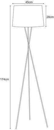 Торшер - тринога Цей світильник - класичне рішення для будь-якого типу приміщення. Ідеально підходить як додатковий елемент освітлення. Завдяки своїй універсальній формі він впишеться як в сучасні, так і в більш традиційні приміщення. Лампа, розміщена в кутку кімнати, додасть їй неповторну атмосферу. Він буде цікаво виглядати поруч з диваном або поряд з вашим улюбленим кріслом, де він зможе зробити вечори, проведені за чаєм і гарною книгою, приємнішими. Каркас лампи виготовлений з високоякісного металу, а абажур покритий міцною синтетичною тканиною. Три металеві ніжки піднімаються вгору, де вони перетинаються і з’єднують