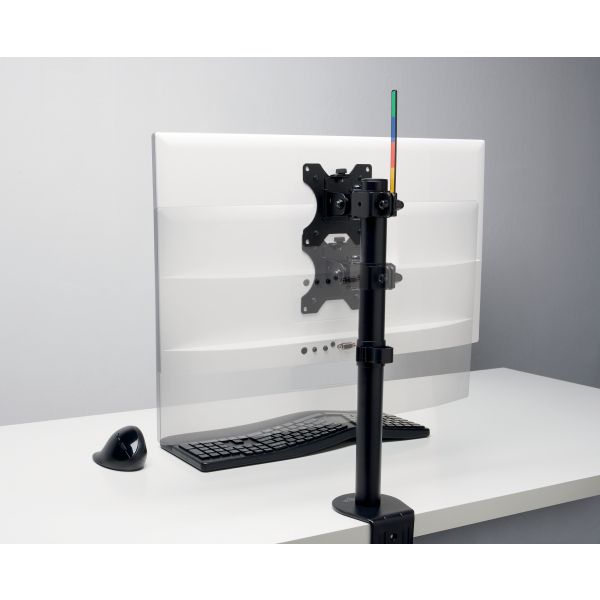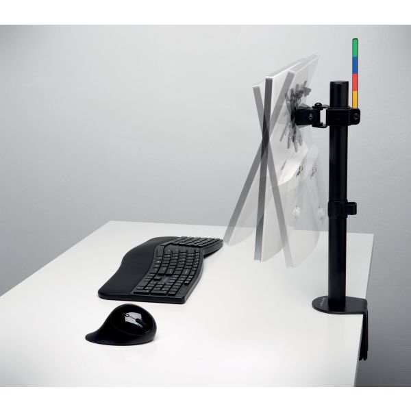 Система SmartFit® дозволяє миттєво встановити монітор на відповідну зручну висоту._x000D_ Просто підберіть розмір вашої руки до кольору на схемі, що додається до виробу, встановіть висоту відповідно до вибраного кольору — і готово!_x000D_ Широкий діапазон регулювання: поворот на ±90°, зміна орієнтації на 180° (портрет або альбом) і регулювання кута монітора на ±45°._x000D_ Має 2 варіанти кріплення - за допомогою С-подібного затискача або люверсного затискача, виготовленого з міцної сталі та алюмінію._x000D_ Легко кріпиться до краю столу за допомогою C-подібного затискача або затискача з вушком — займає мало місця, не дряпає та не пошкоджує поверхню столу._x000D_ Знімна монтажна панель VESA 75/100 вміщує монітори розміром до 34" і вагою до 8 кг/17,6 фунтів. Система проводки кабелів зменшує безлад на столі.