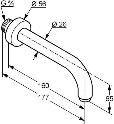 вилив для ванни DN 20 вилив для настінного монтажу 160 мм S-вказівник M 24 x 1 перлятор потік води 25 л/хв при тиску 3 бари з маскувальною розеткою