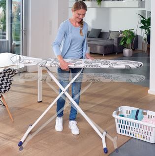 Стільниця цієї моделі виготовлена з високоякісного пластику EPP. Цей матеріал не деформується під дією тепла і робить прасування дуже комфортним, а вага дошки значно легша, ніж, наприклад, сталеві конструкції. Завдяки своїй винятковій легкості (важить всього лише 5,4 кг), модель AirBoard Express M Solid легко розкладати, переносити та зберігати. Стійка рама, яка компенсує нерівності поверхні, оснащена накладками проти ковзання та захистом від самоскладання під час, наприклад, перенесення дошки. На стільницю є чохол з чистої перфорованої бавовни. Цей матеріал гарантує відмінну паропроникність. Поверхня прасувальної дошки Leifheit AirBoard Express M Solid має розміри 120 x 38 см, що робить її придатною для прасування будь-якого стандартного одягу. Модель оснащена вбудованою універсальною підставкою для парових станцій розміром 36,5 х 27 см, на якій також зручно розмістити праску. Крім того, до нього прикріплений тримач кабелю, щоб він не заважав під час прасування, і вішалка, щоб ви могли зручно відразу повісити випрасуваний одяг. AirBoard Express M Solid має регульовану висоту від 76 до 100 см, що дозволяє ідеально підлаштуватися під зріст людини, яка буде використовувати цю модель. У складеному вигляді дошка має такі розміри: 153 см у висоту x 49 см у ширину x 8 см у глибину. Він виготовлений у Європі та має 5-річну гарантію.