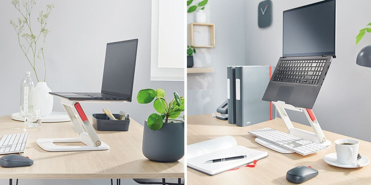 Регульована підставка для ноутбука Leitz Ergo, яку можна встановити в багатьох положеннях, піднімає ноутбук на ергономічно оптимальну висоту, забезпечуючи зручне положення для очей і коригуючи поставу під час роботи. Можливість регулювання висоти і кутів, включаючи горизонтальне вирівнювання; займає мало місця, що робить його ідеальним для компактних столів. Використання підставки також покращує потік повітря під ноутбуком, що допомагає охолоджувати батареї та інші компоненти та підтримує високу продуктивність пристрою. З цією стильною підставкою для монітора, розробленою в мінімалістичному дизайні з матовим покриттям, ви покращите своє здоров’я та благополуччя, легко створивши ідеальне робоче місце. Комбінуйте підставку з іншими продуктами Leitz Ergo, щоб створити зручне та гнучке робоче середовище, яке забезпечить вам рух і продуктивність протягом усього дня.