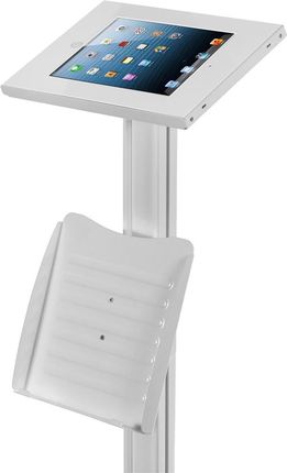 Підставка для планшета iKiosk сумісна з iPad 2/ 3/ 4/ та IPAD Air/ Air2/9,7" Pro. Технічні характеристики Підлоговий тримач для планшета з місцем для каталогів: сумісний з iPad 2/ 3/ 4/ та iPad Air/ Air 2/9.7" Pro. Виготовлений з високоякісного алюмінію, сталі та пластику. Розміри: 400 x 302.5 x 1086 мм Регулювання нахилу: 0 ° -75 ° Поворот: 90 ° ~ 0 ° Захист від крадіжки Місце для каталогиКабельний органайзерМаксимальне навантаження: 1 кгЗамок безпекиСтійка сталева основаКолір: білий