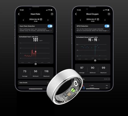 Водонепроникність IP68 Вимірювання ЧСС Вимірювання оксигенації крові Вимірювання рівня напруги Спортивні режими Крокомір Моніторинг сну Дистанційна камера Синхронізація з Apple Health / Google Fit Зарядний кейс в комплекті - 200mAh (дозволяє заряджати кілька разів)