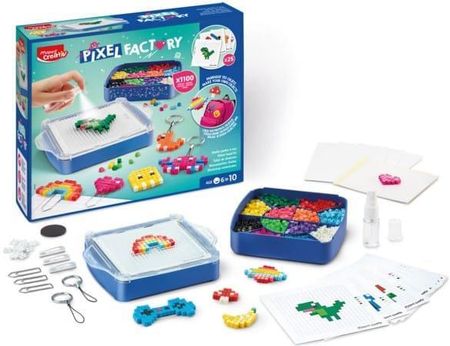 Набір рекомендований для дітей від 6 років. У набір входить: Коробка містить лоток для розкладання, контейнер для бісеру з 12 відділеннями, 1110 кубічних намистин 12 кольорів, 10 аркушів із 25 шаблонами різної складності, 30+20 спеціальних намистин, 12 аксесуарів (затискачі, шпильки, магніт, брелок. ..), спрей. Набір виготовлено відповідно до всіх норм ЄС щодо дитячих товарів.