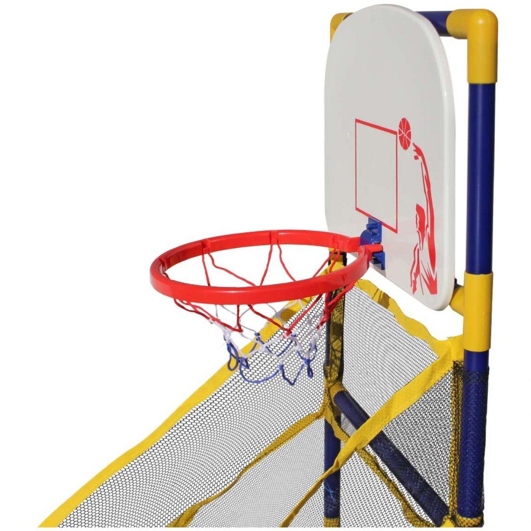 MASTER Arcade basketball hoop - аркадна гра для дітей з баскетбольним кільцем і міні-м'ячем. Продукт призначений для дітей від 2 років. Це допомагає весело тренувати важливі моторні навички. Параметри: Висота кошика над землею: 100 см Розміри в складеному стані: 86 x 45,5 x 129 см Включає надувний м'яч розміром 6 дюймів і насос Вага упаковки: 2 кг Розміри упаковки. : 32 x 42 x 14 см p>