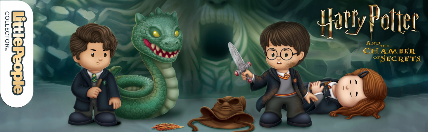 Улюблені фігурки включають Гаррі Поттера™, Джінні Візлі™, юного Тома Реддла™ та отруйного василіска – усі у чарівних розмірах Little People®.