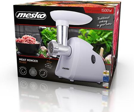 Аксесуари в комплекті - сито середнього розміру; сито для фаршу; мак; вантуз; наповнювач для ковбас Технічні деталі: Виробник - Mesko Характеристики упаковки / Глибина брутто (мм): 250 мм Характеристики упаковки / Висота брутто (мм): 220 мм Характеристики упаковки / Загальна ширина (мм): 275 мм Характеристики упаковки / Кількість в упаковці: 4 шт г Характеристики упаковки / Пластик (без ПЕТ): 21,00 г Характеристики упаковки / Вага тари (кг): 0,94 кг Характеристики упаковки / Об’єм (м3): 0,015125 м³ Характеристики упаковки / Вбудована батарея: немає Функції упаковки / Податок WEEE: CL109:5:2017-04- 01 Характеристики упаковки / Чорні метали: 140 г Характеристики упаковки / Загальна глибина коробки: 237 мм Характеристики упаковки / Загальна ширина коробки: 565 мм Характеристики упаковки / Загальна висота коробки: 520 мм. Характеристики упаковки / Вага нетто коробки: 11,06 кг Характеристики упаковки / Вага упаковки: 1,184 кг Характеристики упаковки / Кількість піддонів: 96 шт. детальніше / Інші функції: Солідний пристрій для тих, хто бажає готувати домашні ковбаси та фарш. Оснащений трьома ріжучими ситами (змінними): одне для фаршу, друге для маку, третє має отвори середнього розміру. У комплект також входить поршень і наповнювач для ковбас. Весь пристрій виготовлено з міцних матеріалів, які легко розбирати та чистити. Крім прямого режиму, він має функцію реверсу. Зазвичай пристрій розрахований на максимальну потужність 350 Вт із потужністю важеля 1500 Вт. Технічні деталі / Максимальна потужність: 1500 Вт Технічні деталі / Реверс: функція реверсу Технічні деталі / Виробник: Mesko Назва продукту виробника: MS 4809 Сімейство продуктів виробника: М’ясорубка Потужність: 350 Вт Корпуси: ТакГарантія: 24 місяціЗагальний опис / Колір: БілийЗагальний опис / Легко чиститься: ТакДизайн / Вбудований перемикач: ТакВміст упаковки / Аксесуари в комплекті: Сито середнього розміру; сито для фаршу; мак; вантуз; наповнювач для ковбаси