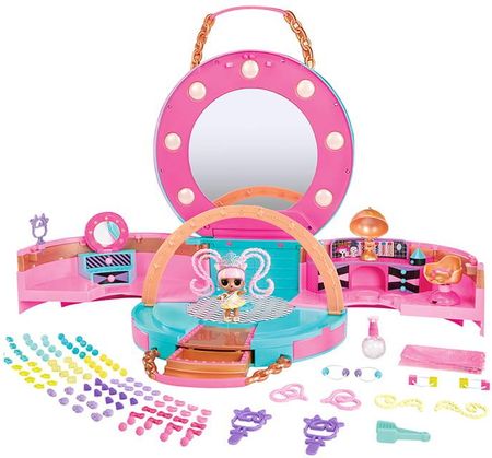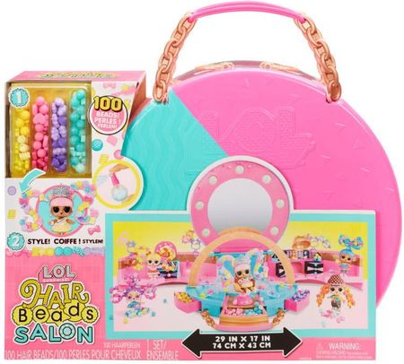 {col/50/}LOL Surprise Hair Beads Tots Hair Salon Вік дитини: 4+ Серія: Hair Beads TotsВ наборі: Станція для укладки: перукарське крісло та аксесуари: гумки для волосся, дзеркало, пульверизатор для волосся. Розміри валізи в розкладеному вигляді: ширина 74 см, висота 43 см. {col/50/}