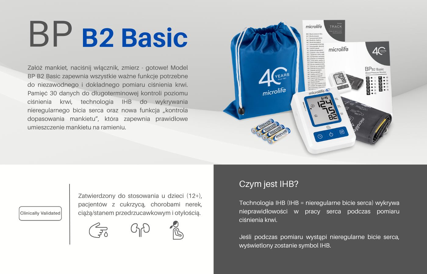 Одягніть манжету, натисніть перемикач, виміряйте - готово! Модель BP B2 Basic забезпечує всі важливі функції, необхідні для надійного та точного вимірювання артеріального тиску. Пам’ять на 30 даних для тривалого моніторингу рівня артеріального тиску, технологія IHB для виявлення нерегулярного серцебиття та нова функція «перевірки прилягання манжети», яка забезпечує правильне розташування манжети на руці.