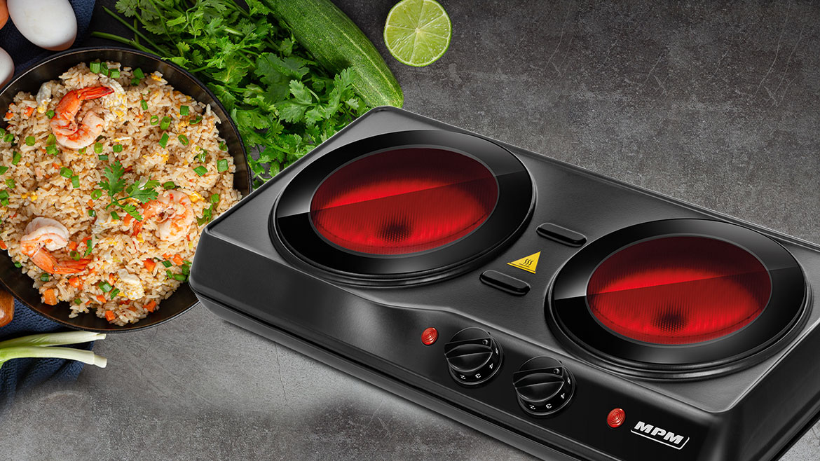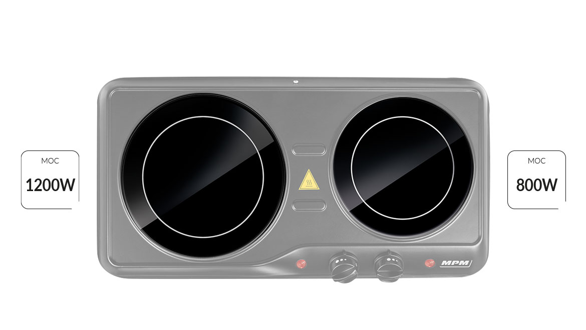 Стеклокерамічна плита МКЕ-21 - це стильний і практичний пристрій. Завдяки містким зонам нагрівання діаметром 19 см і 16,5 см можна розмістити великі каструлі і сковорідки. Плита також має регульований термостат для підтримки потрібної температури їжі та світловий індикатор, який інформує про робочий стан.