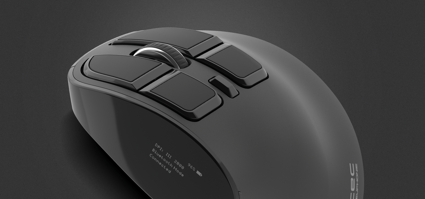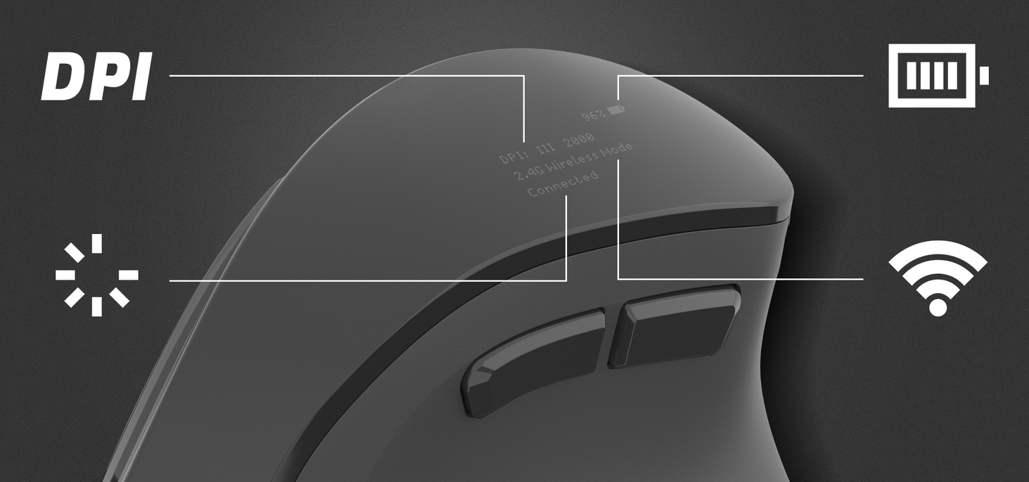 Функціональність і сучасність миші підтверджується дисплеєм, встановленим у верхній частині корпусу, на якому відображається вся найважливіша інформація, така як: поточний рівень заряду батареї, стан бездротового підключення та активна роздільна здатність DPI. З мишкою Natec Euphonie вам не доведеться нічого вгадувати, адже ви можете бачити все на екрані, що значно полегшує повсякденну роботу.