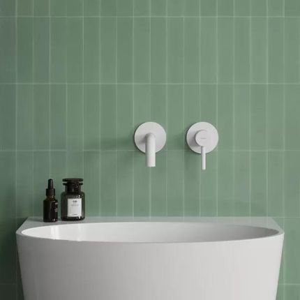 Змішувач для умивальника прихованого монтажу, з коротким виливом 16-18,5 см, накладний елемент, білий матовий.