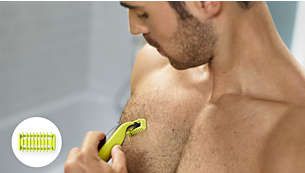 Philips OneBlade Face + Body підстригає, голить і обрізає волосся будь-якої довжини. Включає лезо для обличчя, лезо із захисним ковпачком для тіла та гребінець для тіла. Забудьте про використання кількох пристроїв. Все, що вам потрібно, це OneBlade.