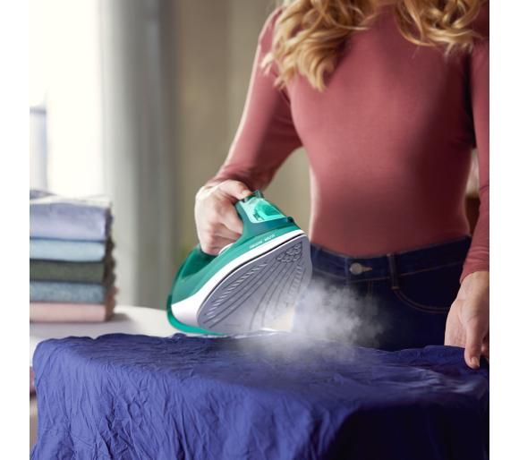 Праска має потужність 2400 Вт, завдяки чому швидко нагрівається та ефективно розгладжує навіть найважчі для прасування складки.
