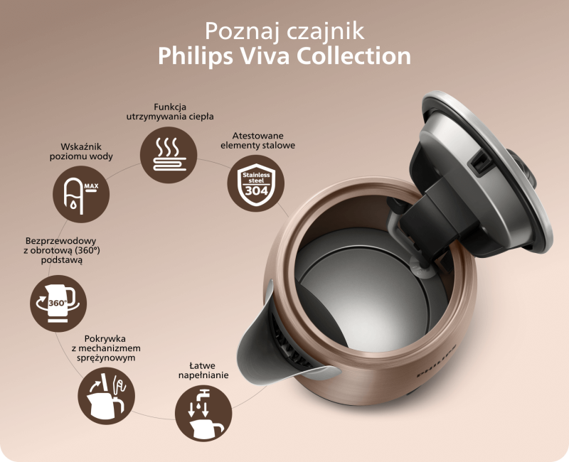 Обертова основа (360°) робить чайник надзвичайно зручним підйом і опускання. Це також спрощує роботу, коли ви хочете наповнити або очистити пристрій.