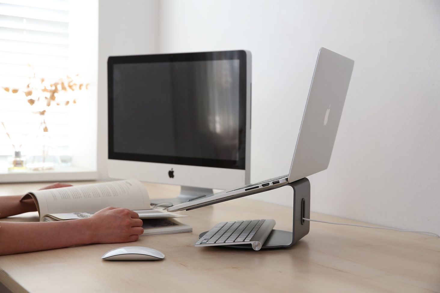 Основа має вбудовані кулькові підшипники, обертання на 360 градусів забезпечує зручний доступ до всіх портів і розеток, а також простий поворот екрана без необхідності пересування комп’ютера.