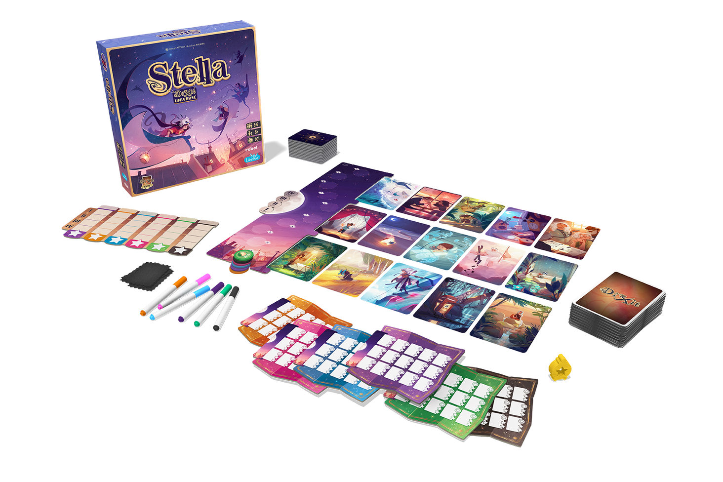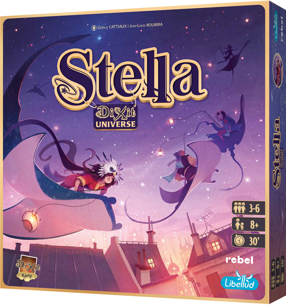 Шукачі зірок! Вирушайте в подорож небом і принесіть трохи світла у свій світ. Stella — змагальна гра у всесвіті Dixit, у якій гравці інтерпретують ілюстрації у світлі колективно намальованого слова. Виберіть ту саму графіку, що й інші, щоб виграти! Йдіть на прорахований ризик, але будьте обережні, оскільки жадібність може закінчитися вашим падінням у безодні темряви!