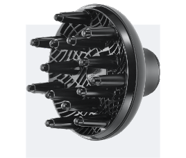 Дифузор, що входить в комплект, піднімає волосся біля коріння, додає об'єм, допомагає отримати і закріпити завиток.