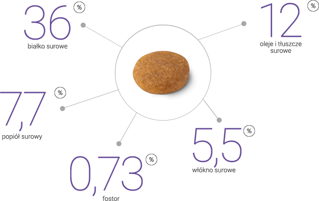 Високий рівень білка (37%) сприяє збереженню та розвитку м'язової маси._x000D_