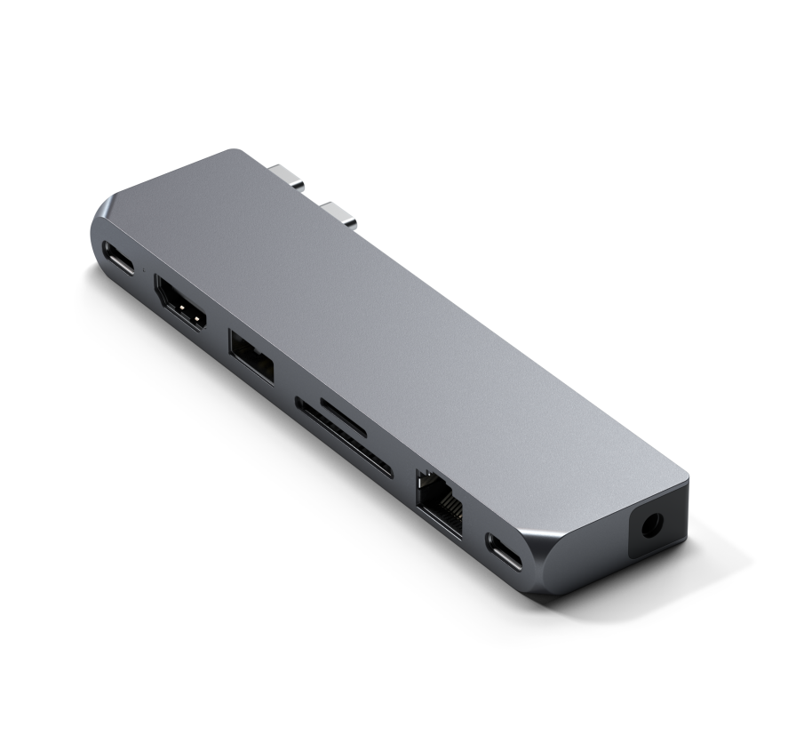 Satechi Pro Hub Max — це універсальний адаптер, який розширює можливості вашого ноутбука. Пристрій має порти, які полегшують повсякденну роботу і дозволяють використовувати різні пристрої одночасно.1 x USB 4 - джерело живлення до 96 Вт, вихід зображення до 6K 60 Гц, передача даних до 40 Гб / с1 x HDMI порт - до 4K 60 Гц 1 порт даних USB - A 3.0 - до 5 Гбіт/с1 х пристрій для зчитування карток micro/SD 1 порт Gigabit Ethernet 1 порт даних USB-C - до 5 Гбіт/с1 х порт для навушників (аудіороз'єм)