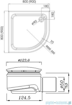 Кат. № 3.0128 Довжина 80 см Ширина 80 см Радіус R55 см Висота 17 см Глибина 7 см Форма: напівкруглаМатеріал: санітарний акрилКолір: білий Спосіб монтажу: на підлозіДіаметр зливу: 90ммГарантія: 10 років