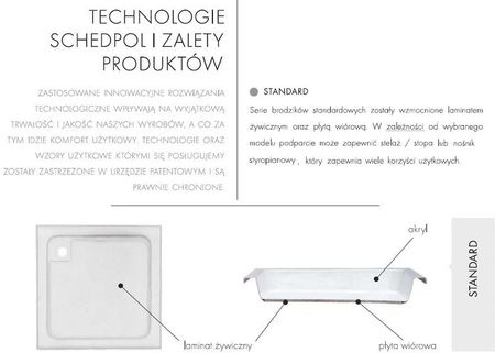 CASPAR — це тонка колекція, заснована на простій, але вічній геометрії, яка є основою дизайну душових піддонів :) CASPAR створено для людей, які цінують сучасний стиль у поєднанні з комфортом використання. Невелика загальна висота означає, що ці неглибокі душові піддони можна встановити на підлогу або вставити в неї, забезпечуючи доступ до ванної кімнати без порогів. Душові піддони посилені полімерним ламінатом і ДСП і вкриті інноваційним антибактеріальним покриттям, що полегшує очищення. Вони гарантують тривале комфортне використання. Завдяки використанню додаткового зміцнення у вигляді смоляного ламінату піддони більш довговічні та безпечні у використанні :) Додатковою перевагою є спеціальне антибактеріальне покриття, яке полегшує очищення піддону, оскільки на ньому залишаються відкладення косметики для догляду. його поверхня меншою мірою:) Тонкий, але ефективний душовий піддон точно знайде місце у гарній ванній кімнаті :)