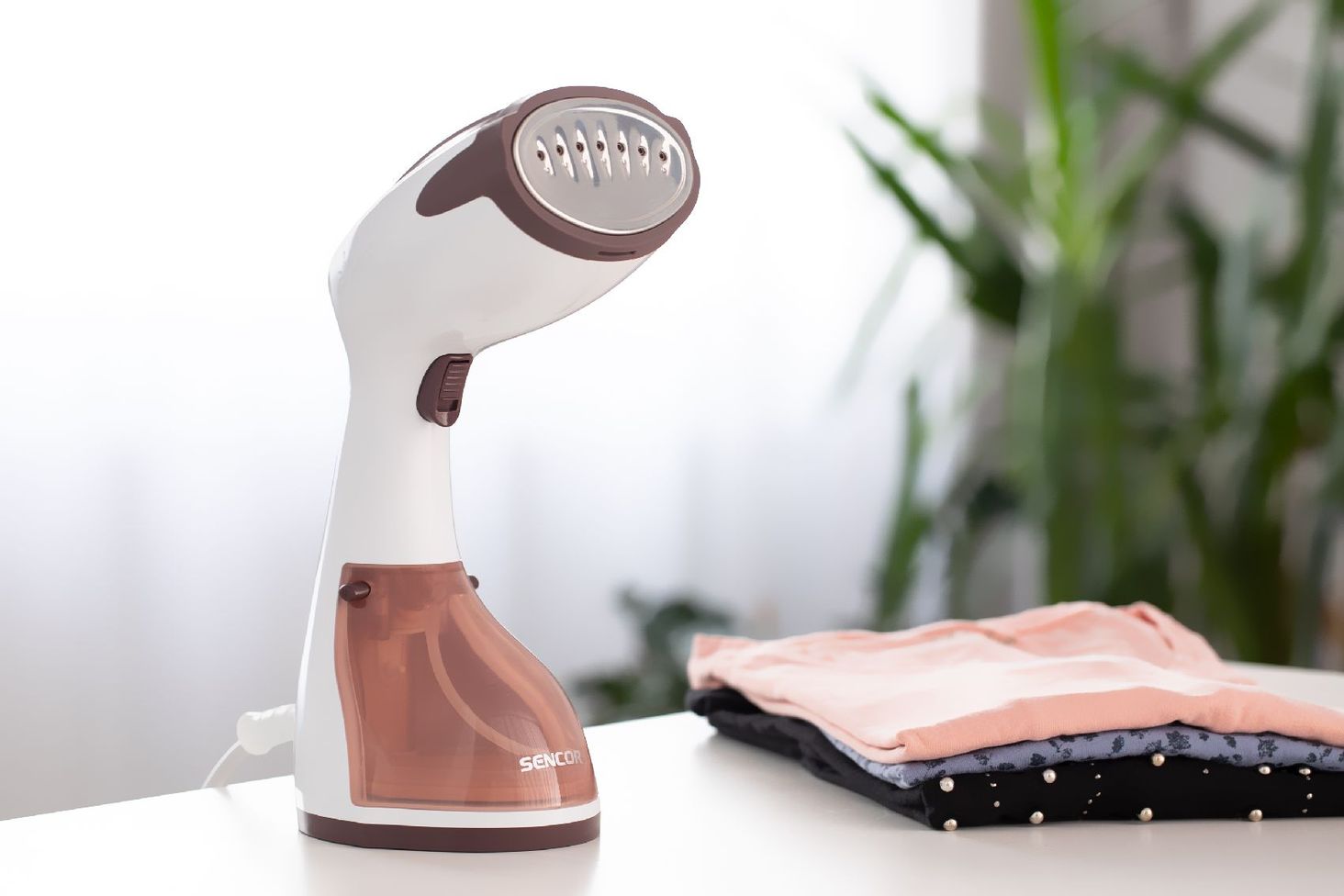У набір входить ємність для наповнення водою. Наконечник щітки для товстіших тканин. Тканевий наконечник для делікатних матеріалів. Плавний потік пари: 20 г/хв. Довжина шнура живлення: 1,9 м