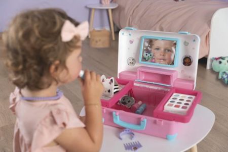 Валіза Smoby Cat House Gabi Suitcase Beauty Валіза Gabi's Cat House з 15 аксесуарами, такими як тіні для повік, блиск для губ, лаки для нігтів і аксесуари для волосся. Всі продукти не є справжньою косметикою. Зроблено у Франції.