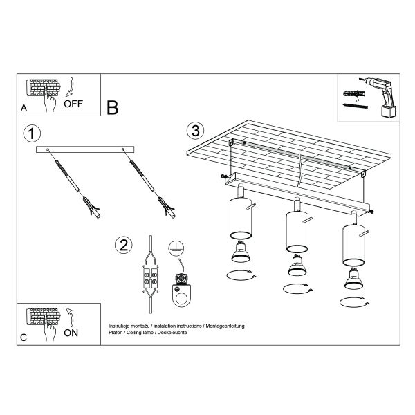 Освітіть свій інтер'єр за допомогою стельового світильника з 3 лампами, який можна встановити в будь-якій кімнаті. Регульовані кронштейни дають вам велику свободу у створенні атмосфери інтер'єру - від теплих сутінків до повного світла, в залежності від положення плафонів. Стельовий світильник був розроблений з урахуванням простоти використання - подивіться, як він подбає про ваш комфорт.