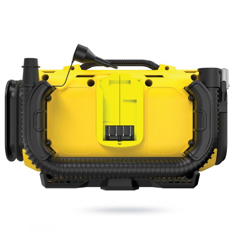 Завдяки вдосконаленій технології акумулятора, відсутності ефекту пам’яті та мінімальному саморозряду, літій-іонний акумулятор V20 готовий до роботи, куди б ви не були, і працюватиме довше від 3 джерел живлення, включаючи батарею V20, стіну Вилка або автомобільний адаптер на 12 В для максимальної зручності та використання в будь-якому місці дозволяє легко накачати все, від футбольного м’яча до автомобільної шини Автоматичне вимкнення дозволяє користувачам вводити необхідні параметри PSI та піти, а цифровий датчик забезпечує легкий для читання дисплей.