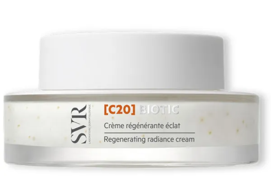 SVR C20 Біотичний регенеруючий і освітлюючий крем для обличчя з сильною антиоксидантною дією, підходить для догляду за ніжною шкірою. Крем C20 Biotic не тільки захищає від вільних радикалів і допомагає відстрочити появу ознак старіння, але також зменшує наявні зморшки та оживляє шкіру. Він активує фізіологічні механізми в шкірі, сприяючи зміцненню її захисних функцій. Підтримує метаболізм клітин, допомагає захистити від сонячних променів і бореться з пігментацією та плямами від прищів. Тонізує і благотворно впливає на стан шкіри, повертаючи їй природне сяйво. Крем містить високостабільну, світло- і температуростійку похідну L-аскорбінової кислоти останнього покоління, яка значно проникає глибоко в шкіру. Антиоксидантний ефект був збагачений вітаміном Е - завдяки своїм захисним капсулам цей потужний антиоксидант виділяється лише після нанесення на шкіру.