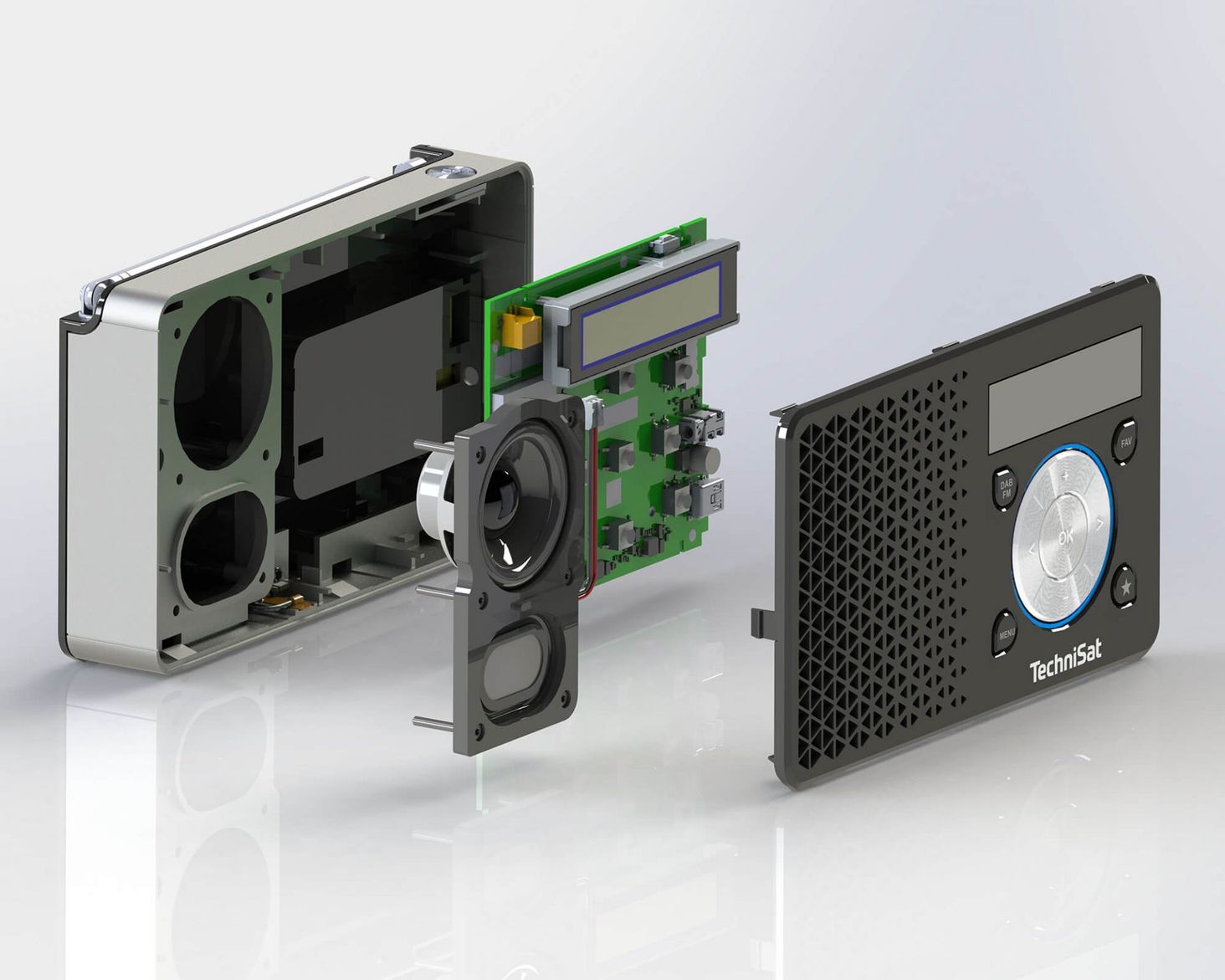 Як правило, аналогічні системи гучномовців вимагають набагато більше місця для хорошої якості звуку. У зв'язку з необхідністю компактної конструкції, яка не допускає глибшого корпусу, була розроблена спеціальна додаткова пасивна басова діафрагма. У поєднанні з частотною характеристикою, адаптованою до корпусу, радіо забезпечує чудове звучання з чіткими високими, чудовими середніми та глибокими басами.