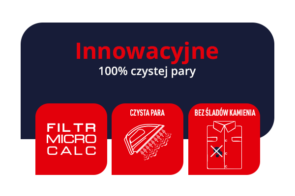 У цьому допоможе інноваційна технологія, яка фільтрує 100% пари перед тим, як її випустити. Фільтр затримує частинки вапняного нальоту (>0,2 мм) і його легко чистити. Тепер ви можете бути впевнені, що тканини будуть гладкими та без плям.