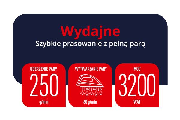 Забудьте про очікування, поки праска нагріється. Завдяки високій потужності нога нагрівається дуже швидко, а прасування відбувається ефективно.