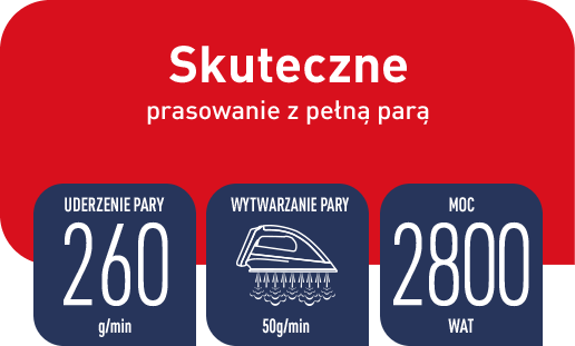 Покращуйте результати прасування завдяки потужному паровому пориву 260 г/хв, який глибоко проникає в матеріал і миттєво видаляє найскладніші складки. Прасуйте швидко та ефективно завдяки безперервній подачі пари до 50 г/хв.