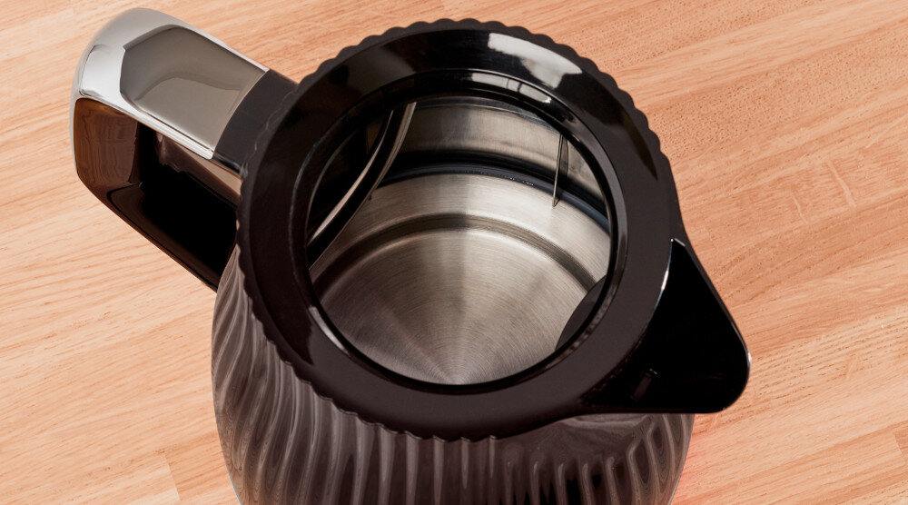 Нагрівальний елемент, захований у корпусі, забезпечує швидший нагрів, а гладка поверхня полегшує очищення внутрішньої частини чайника.