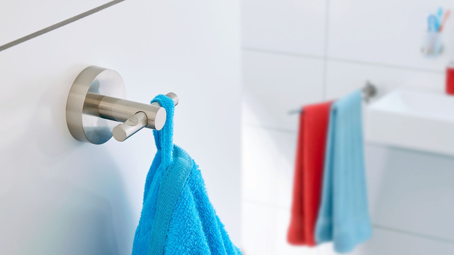 Аксесуар для ванної кімнати в обраному дизайні Адаптер для легкого встановлення без свердління Клей у практичному аплікаторі, що гарантує міцне з’єднання через 12 годин Шестигранний ключ, завдяки якому ви можете легко прикріпити аксесуар до адаптера