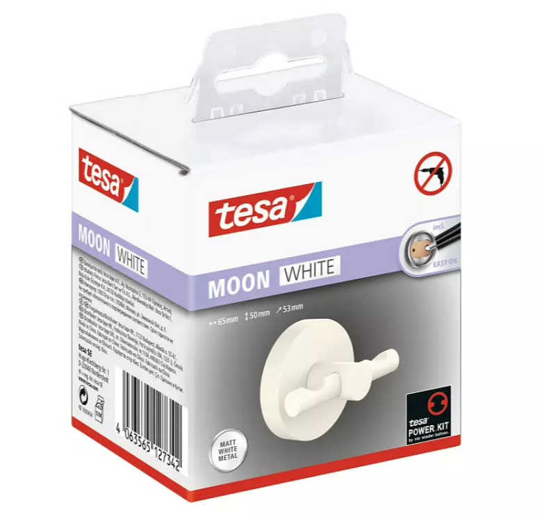 Практичне місце для халата і шикарна деталь декору ванної кімнати. Дуже сучасний гачок з матовою білою обробкою, оформлений у мінімалістичному стилі. Ідеально вписується в сучасні тенденції дизайну інтер’єру: підходить до індустріального, скандинавського та нейтрального стилів. Тримач із порошковим покриттям можна легко та без зусиль прикріпити до стіни без свердління завдяки технології кріплення tesa® Power.Kit із міцною та довговічною клейкою ма
