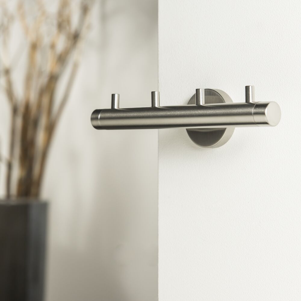 Гак-бар Tiger Boston виготовлений із нержавіючої сталі з матовою обробкою. Планка проста в установці та забезпечує достатньо місця для рушників, халата чи ганчірок, що робить її ідеальним доповненням до вашої ванної кімнати чи кухні. Виріб кріпиться до настінної пластини, за якою ховаються елементи кріплення (у комплекті), що надає всьому виробу стильний вигляд.