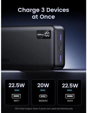 Powerbank 20000mAh Ugreen PB312, PD 20W (чорний)