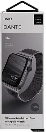 Новий оригінальний продукт UNIQ ремінець Dante Apple Watch Series 4/5/6/7/SE 40/41 мм. Графіт з нержавіючої сталі/графіт