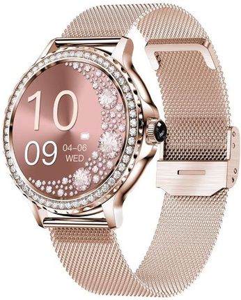 Жіночий розумний годинник Veltori VT320-1, золотий браслет + рожевий силіконовий ремінець РОЗУМНИЙ ГОДИННИК VELTORI VT320-1 Золотий браслет + рожевий силіконовий ремінець Модель: VT320 Процесор: RTL8763EWE Акумулятор: 200 мАг, час роботи приблизно 5 днів Сумісність: Android 5.0 і вище, iOS 10.0 і вище, Bluetooth 5.0