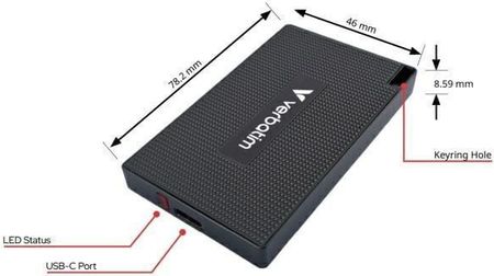 Докладніше на сайті виробника. Технічні характеристики Ємність: 1 ТБ Джерело живлення: порт USB-C Інтерфейс: USB 3.2 Gen 2x2 Формат SSD: M.2 Швидкість читання: до 2000 МБ/с Швидкість запису: до 1750 МБ/с Матеріал корпусу: метал Вага: прибл Розміри: 78,2 мм x 46 мм x 8,6 мм (Д x Ш x В) Системні вимоги Mac OS X 14 або пізнішої версії Windows 11, 10, 8 Оптимальна продуктивність забезпечується USB 3.2 Gen 2x2. Також сумісний з USB 2.0. Вміст упаковки Verbatim Metal Mini SSD Програмне забезпечення Nero Backup (не сумісне з Mac OS) Гібридний кабель USB-C – USB-C із адаптерним кабелем USB-A Короткий посібник користувача