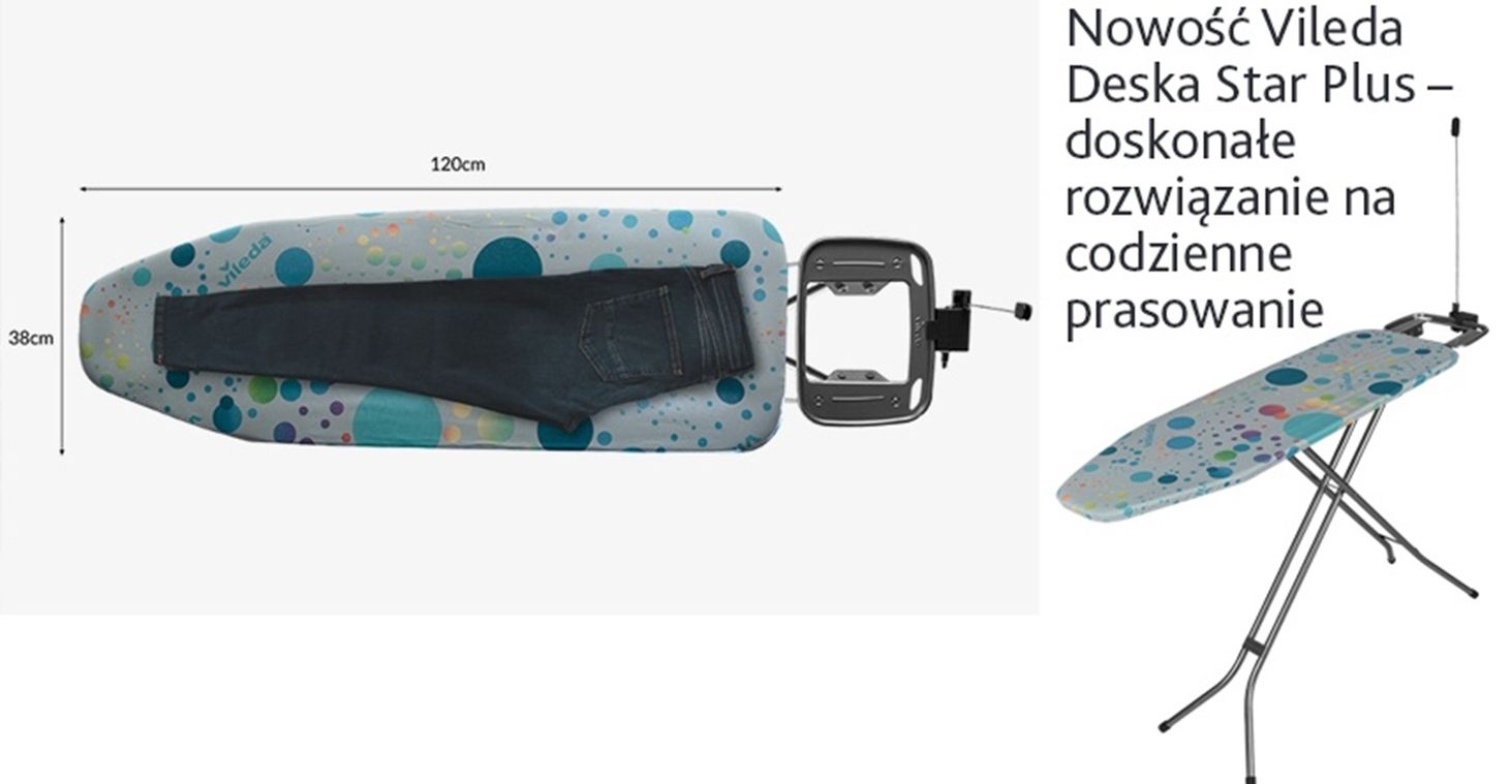 Vileda Star Plus — універсальна, повністю укомплектована прасувальна дошка з оптимальним розміром прасувальної поверхні (120 x 38 см) і доступною ціною.