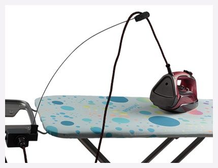 Прасувальна дошка Star Plus з розеткою оснащена розкладною антеною для шнура праски, яка запобігає заплутуванню шнура під час прасування.