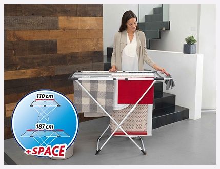 Складна сушарка для білизни створена для різної кількості білизни. Завдяки додатковим висувним крилам його можна відрегулювати відповідно до розміру білизни, що розвішується, тож він займає стільки місця, скільки вам потрібно.